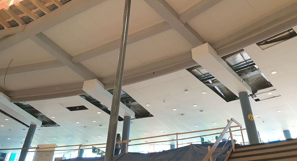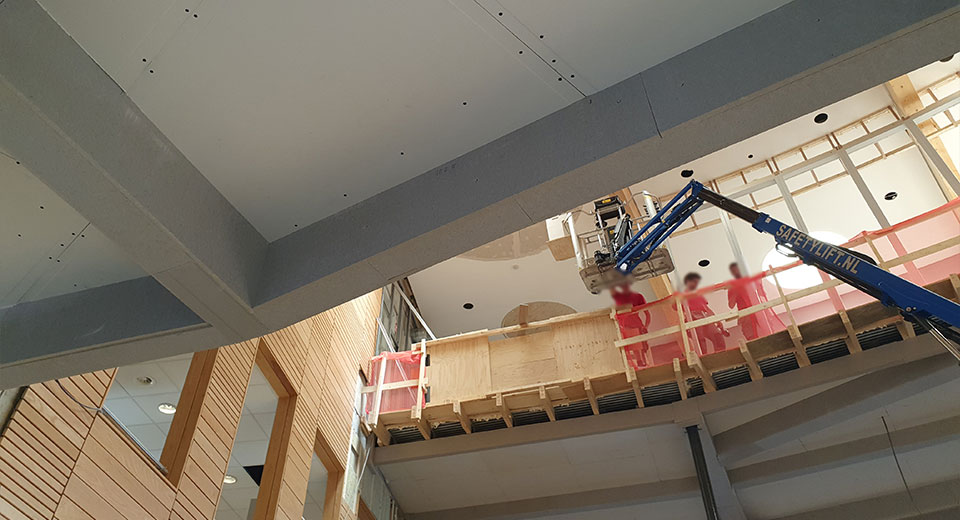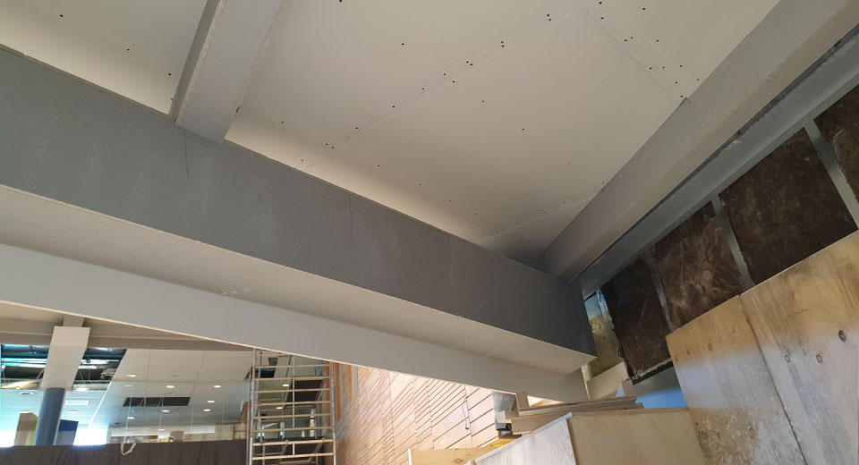 De plafonds van deze nieuwe faciliteiten zijn brandwerend gemaakt met Preficon Board M en de liggers van de hoofddraagconstructie worden bekleed met Preficon Board S. Zowel de plafonds als de liggers hebben een brandwerenheidseis van 60 minuten.